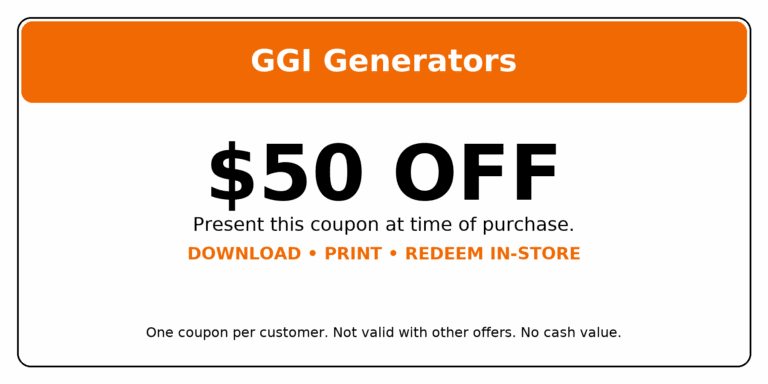 With the presentation of this coupon at the time of the Free Estimate, you will receive a $50.00 discount on the installation of any Generator.